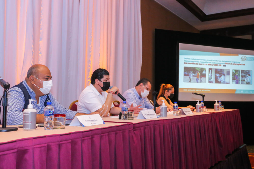 En el marco de esta reunión, el director de la VIII Región Sanitaria, Jaime Álvarez Zayas, informó sobre la situación del Covid-19 en Puerto Vallarta, donde destacó que se ha venido dando una desaceleración en el número de casos confirmados, lo que significa que se deben seguir reforzando las medidas para continuar bajando el índice de contagios y que las acciones que se han implementado por parte de la Mesa de Salud, están dando resultados positivos.